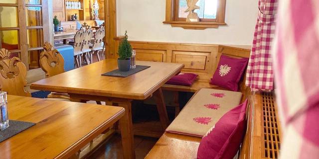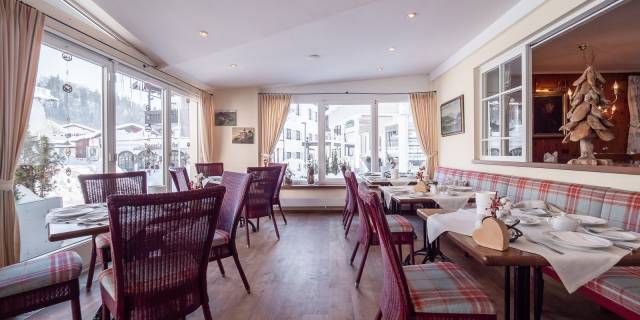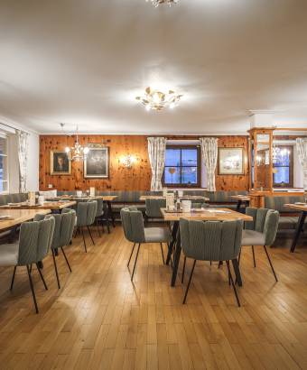 Der angenehme Duft des Holzes empfängt Sie morgens beim vielfältigen Frühstücksbuffet in der großen Zirbelstube. Auch die restlichen Stunden des Tages ist dieser geräumige Gastraum beliebt.